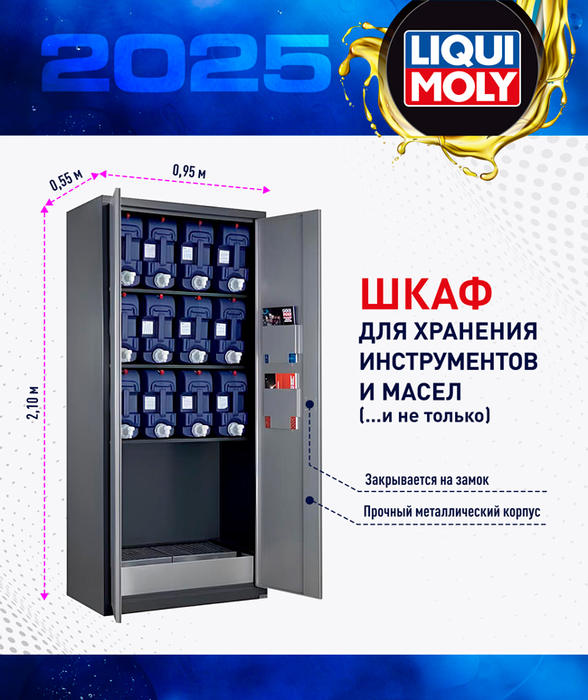 Покупайте любую продукцию Liqui Moly и получите шкаф для хранения инструментов, масел и т.д.